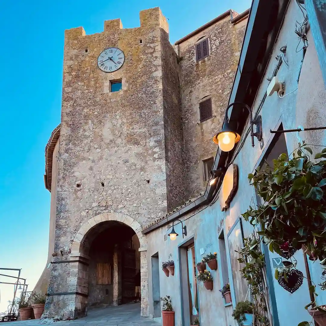 Porta Senese, the Siena Gate, guarding the entrance to the inner city walls in Capalbio. First built by the ruling Aldobrandeschi family in the 11th century after they obtained it from the Tre Fontane abbey in Rome, the city fortifications were then extended and completed by the Orsini, of Siena.